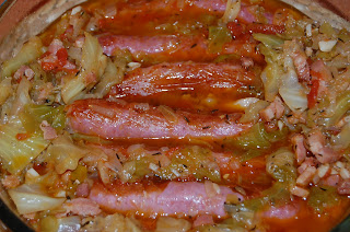 Salsichas Estufadas com Couve Branca